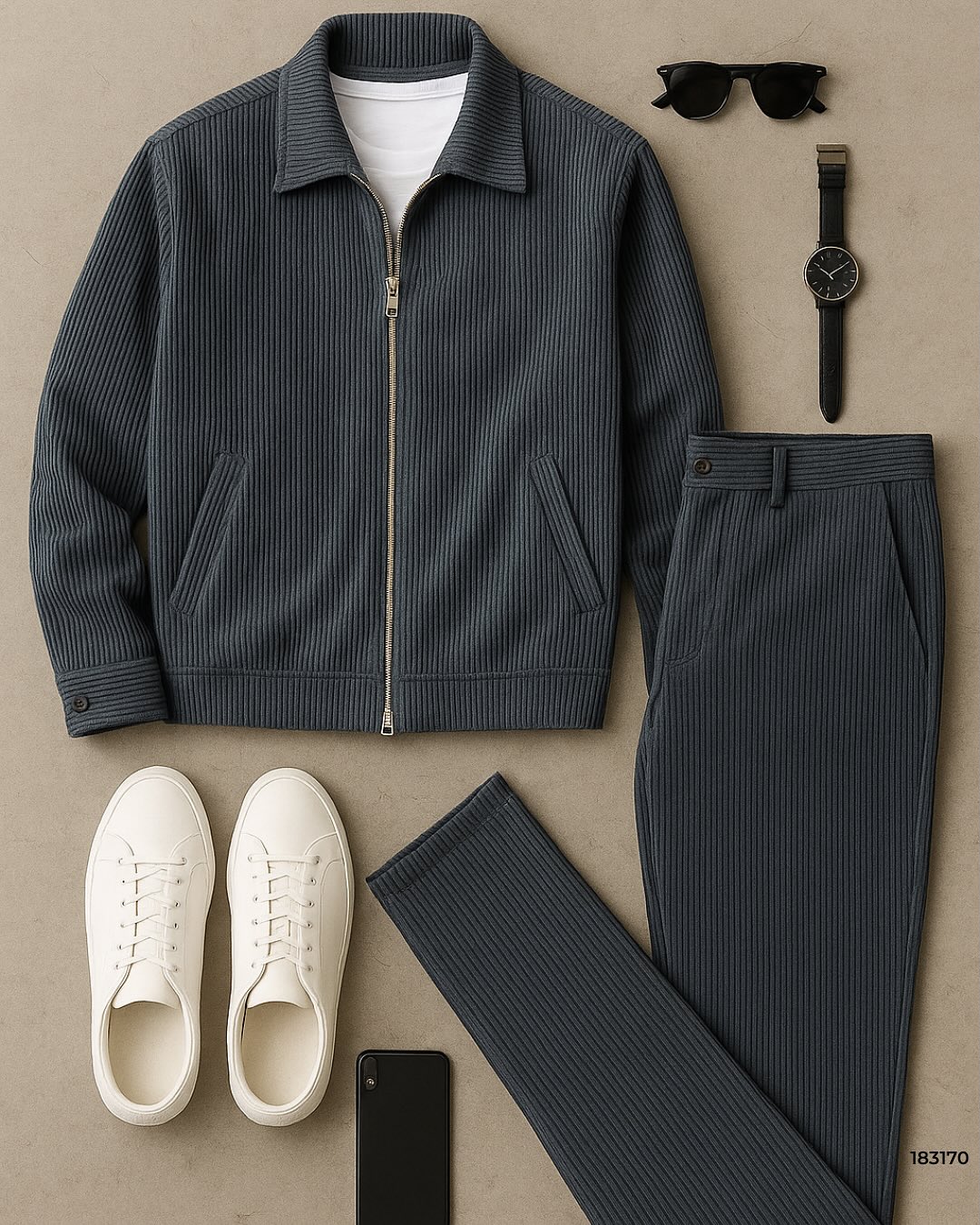 Cet ensemble combine confort et élégance dans un design unique. Fabriqué en velours côtelé doux et de haute qualité, il est parfait pour un usage quotidien ou pour des occasions spéciales. Son design moderne vous garantit un look tendance et soigné à tout moment.